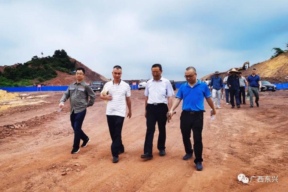 考察组一行来到东兴市高铁站站前路施工现场,通过实地考察和听取相关负责人情况汇报,详细了解化石相关情况。考察组在前期收集资料的基础上,对化石揭露点的地形地貌、地质岩层以及化石分布现状开展了更细致的勘察工作,并对下一步如何保护与挖掘恐龙化石工作进行相关部署。