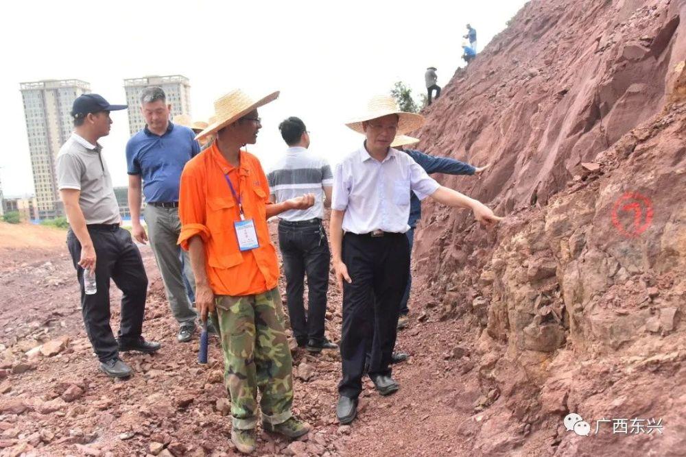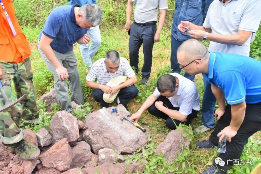 (化石网整理)据东兴市融媒体中心:6月22日,广西自治区地质矿产勘查开发局副局长黄宏伟率考察组到东兴市进行实地考察侏罗纪恐龙化石相关工作,市委常委、副市长李文超陪同考察。