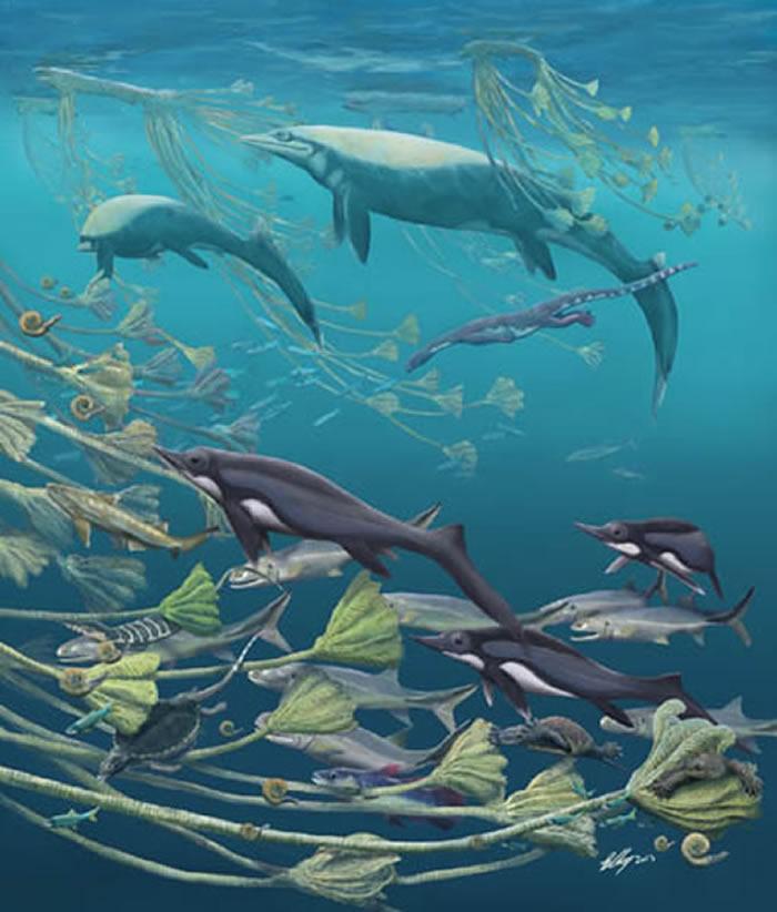 贵州三叠纪关岭生物群复原图 (Brian Choo绘制)