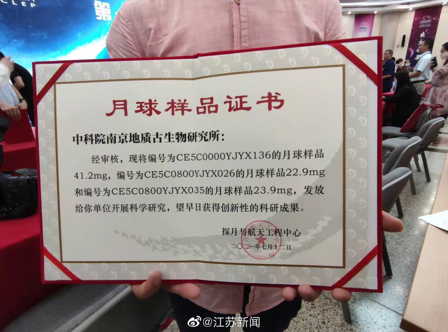 (化石网整理)据中国科学院南京地质古生物研究所:7月12日,第一批月球科研样品发放仪式在北京举行。经审核,中国科学院南京地质古生物研究所殷宗军及另外12所科研机构使用责任人的31份申请获得通过。本次21个样品共17.4764克,其中岩屑样13个868.8毫克,这标志着月球样品的科学研究正式启动。