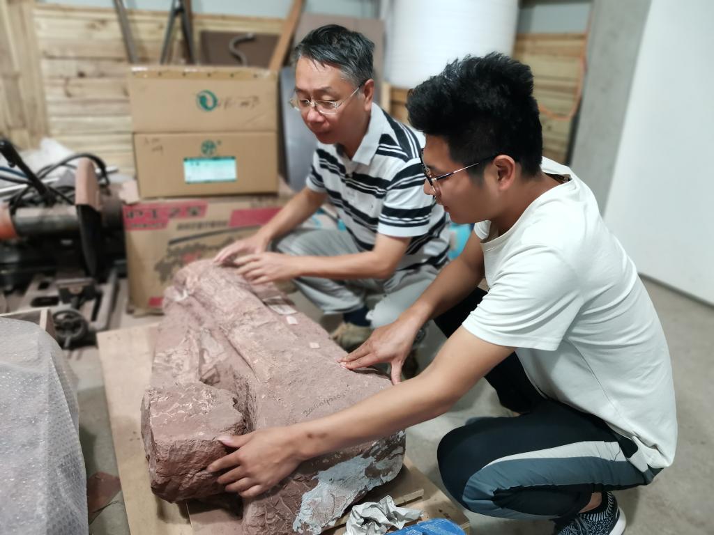 很难想象,在与观众见面前,它埋藏在地层里,已经“散架”了近1亿年。是浙江自然博物院的研究人员和技术人员把这头恐龙“修”好的。