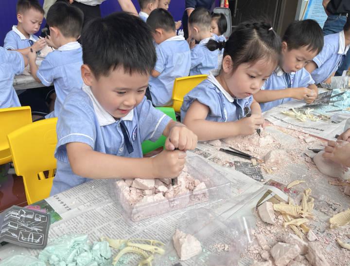 (化石网整理)据东阳市融媒体中心(记者 包康轩 拍友 张美君 摄):9月15日,东阳市妇联幼儿园的孩子在博物馆模拟挖掘恐龙。当日,东阳市妇联幼儿园开展“走进恐龙博物馆,探寻恐龙王国”的活动,零距离地了解了东阳龙,拓展孩子们的视野,激发孩子们对大自然的探究欲望。