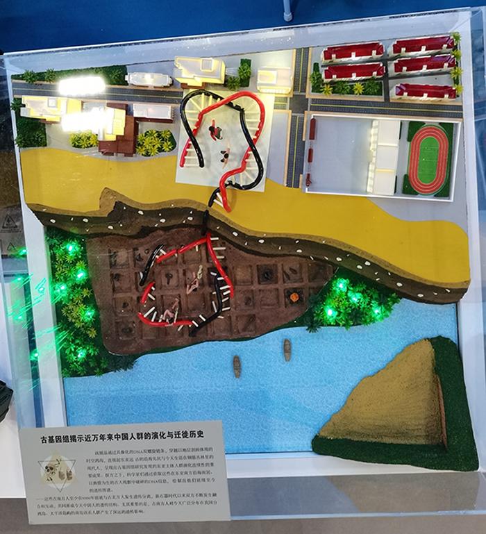 展会上,该研究成果以沙盘形式予以展出:具像化的DNA双螺旋链条,穿越以地层剖面体现的时空鸿沟,连接起东亚远古的沿海先民与今天生活在钢筋丛林里的现代人,呈现出古基因组研究发现的东亚,尤其是中国主体人群演化连续性的重要推论——在9000多年前,中国已经存在有着不同遗传成分的古南方人和古北方人,这两种人群从8000多年前开始有了互相的迁徙和交流,而且从4000多年起变得更加频繁,他们在遗传成分上发生着不断的融合,从而形成了今天中国人的遗传结构,尤其是古北方人对于我国大部分汉族人群有着更为显著的遗传影响。探方之下,我所古DNA研究团队通过共同创新开发的古DNA捕获技术得以获取这些在东亚南方沿海而居、以渔猎为生的古人残骸中破碎的DNA信息,绘制出他们延续至今的遗传图谱——古南方人对今天生活在我国台湾岛(阿美族、泰雅族等少数民族)、太平洋岛屿的南岛语系人群有更为显著的遗传影响。由此可以看到,该研究为追溯华夏民族各族群的来源提供了重要的遗传证据。