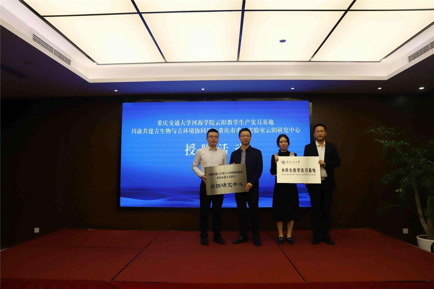 揭牌仪式上,普安恐龙化石管委会相关负责人介绍了云阳恐龙化石群资源情况;重庆交通大学河海学院、川渝共建古生物与古环境协同演化重庆市重点实验室相关负责人宣读了授牌文件,并现场授牌。 根据授牌文件相关要求,在云阳正式成立重庆交通大学河海学院云阳教学生产实习基地及川渝共建古生物与古环境协同演化重庆市重点实验室云阳研究中心,旨在更好推动云阳恐龙化石科学研究及成果转化应用。