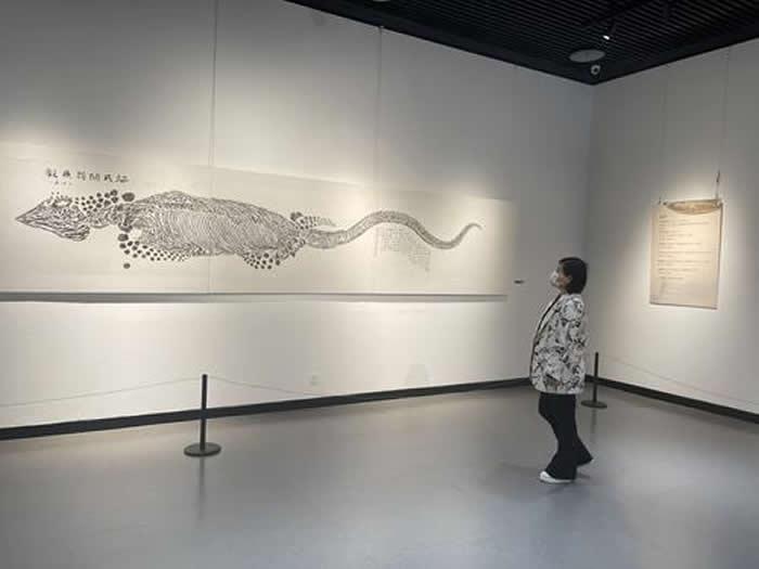 (化石网整理)据盐阜大众报新媒体(姜茂友):为弘扬非遗文化,赋能文化高质量发展,近日,盐城市美术馆举办管业荣化石拓片艺术展,古生物化石收藏家管业荣先生以自建的古生物化石博物馆为依托,用拓片的形式,将千姿百态、精美绝伦的化石,惟妙惟肖地“印”在宣纸上,具有科学、艺术、历史价值,本展分花开、龙吟、鱼跃、影动四个层面,呈现古生物化石之美,独具特色的非遗展品吸引着现场嘉宾、观众驻足观赏,充分展示了我市非遗文化的魅力和传承保护成果。