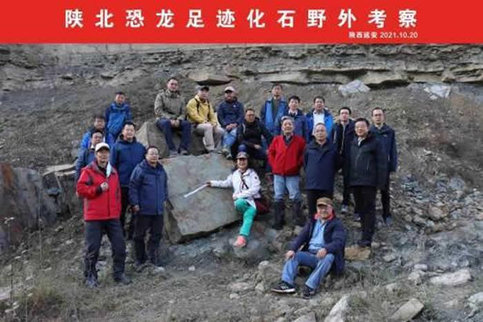 近年来,在陕西省委省政府的坚强领导下,在中国地质调查局的安排部署下,在省自然资源厅的精心指导下,陕西省地质调查院开展了“陕北丹霞地貌地质遗迹调查”“陕西重要县(区)地质遗迹详细调查评价”等项目,先后在延安市、榆林市新发现8处重要恐龙足迹化石产地。为科学鉴定陕北恐龙足迹化石,评价其价值等级,进一步做好古生物化石保护工作,2021年10月19-21日,陕西省地质调查院邀请中国科学院南京地质古生物研究所、中国科学院古脊椎动物与古人类研究所、中国地质科学院、吉林大学等恐龙足迹化石研究和鉴定权威机构知名专家,以及中国地质调查局西安地质调查中心、延安大学、陕西省地质调查院科研团队共30余名专家,在延安市开展了陕北恐龙足迹化石考察与鉴定工作。