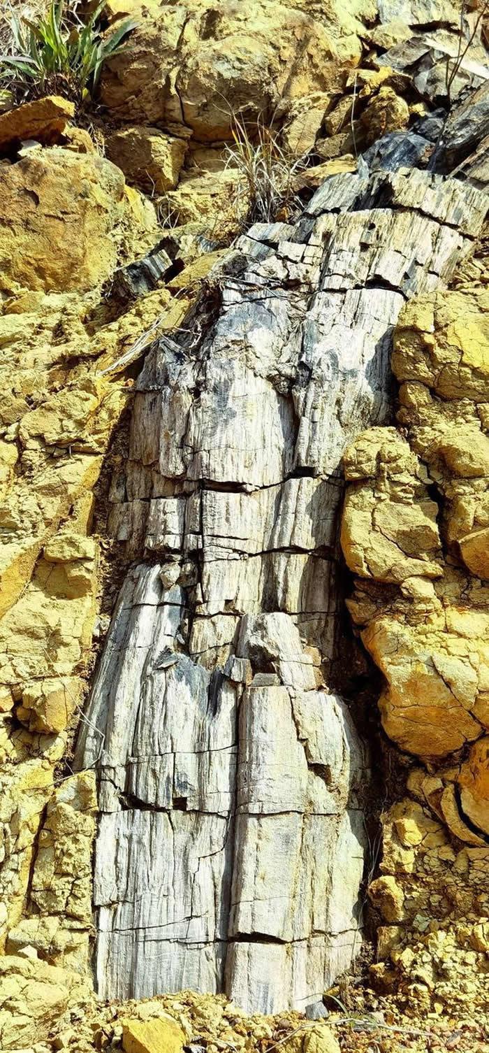 (化石网整理)据河南日报客户端(记者 樊霞 成利军 通讯员 杨迪迪 王璐):11月3日,记者从济源示范区林业局获悉,该单位相关工作人员在进行野外地质遗迹保护巡查时,发现一处硅化木化石遗迹。