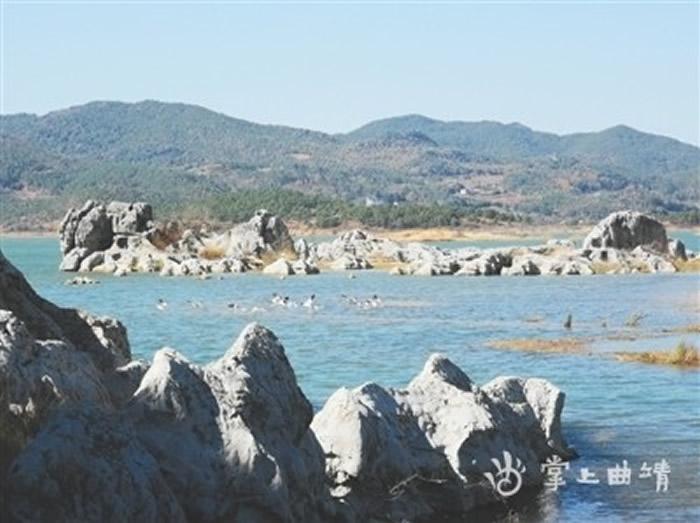 海峰湿地群山葱翠,碧水淼淼,优良的生态环境吸引了许多候鸟前来越冬。在古朴幽静的湿地上,绚丽多姿的古生物化石或裸露在外,或沉在水中。仔细观察就会发现,这些岩石上布满了纹路,各种生物化石千姿百态,有的像珊瑚状,有的如鱼虾、海螺,透过这些古生物化石,恍若置身于亿万年前的海洋世界。