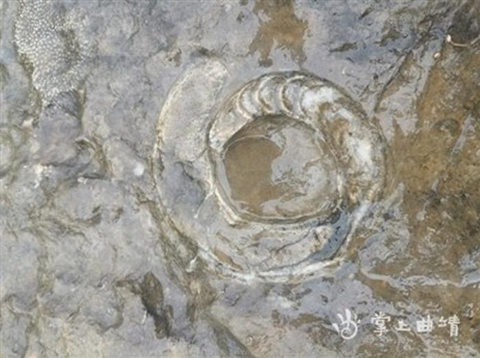 地质爱好者在沾益海峰湿地游玩时意外发现石头上有许多化石