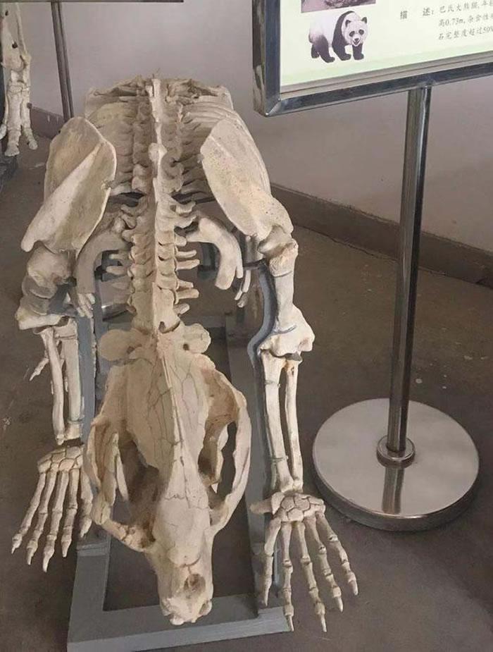 重庆出土的巴氏大熊猫化石,若采用还原技术恢复原型,呈现在人们面前的巴氏大熊猫,体形比现生熊猫大八分之一,显得更加威猛。