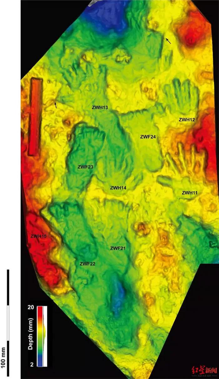 此外,根据手掌印的大小,他们推测这组手印是两个小孩留下来的,“都是很小的手印。当然也不排除是身材极为矮小的古人类的可能性。”