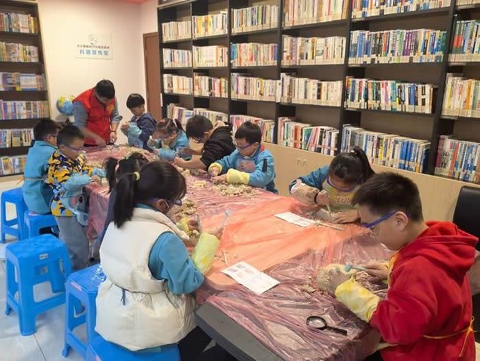 (化石网整理)据嵊泗县人民政府网站:12月6日晚上,洋山镇新时代文明实践所里传出一阵阵叮叮当当的响声,原来是乡村复兴少年宫在举办“我是小小考古学家”恐龙大发现第二期活动。前来参加活动的11位孩子变身小小考古家,他们拿着小锤子、小刷子等考古工具正在开始他们的恐龙考古之旅。
