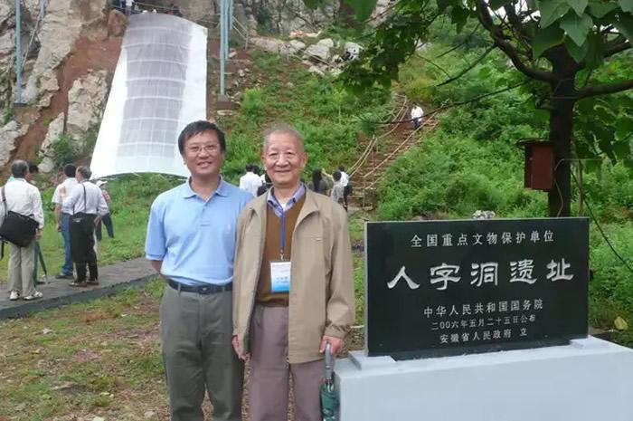 吴新智先生与作者在安徽繁昌人字洞遗址 (2008年5月)