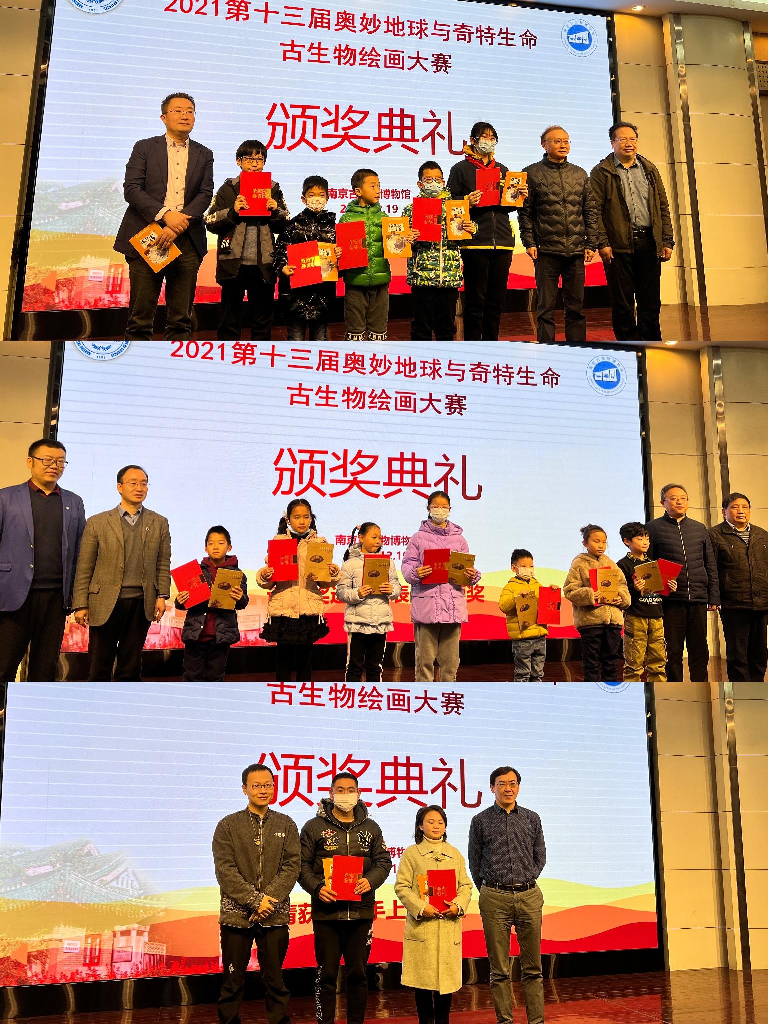 据悉,本届大赛共收到众多个人、学校和社会机构提交有效作品176幅。大赛邀请南京市科协、中学美术老师以及古生物专家组成评审小组。各评委按照科学性、艺术性、创新性等指标,对每件作品进行认真评审和排名,最终得出一等奖10名,二等奖20名,三等奖30名,优秀奖105名,以及优秀组织奖8名。颁奖典礼上,为获得上述奖项的参赛选手代表进行了颁奖。这次绘画大赛,参与人数多,影响力大,参赛作品水平高,从海洋的动物奇虾、菊石、三叶虫、海百合和鱼类,到陆地霸主恐龙,揭示了参赛同学们对漫长地球演化历史,和生命进化奥秘的痴迷和执着的探索,也是同学们热爱地球,热爱大自然,探秘地球环境和生命进化主题的生动记录与写照。