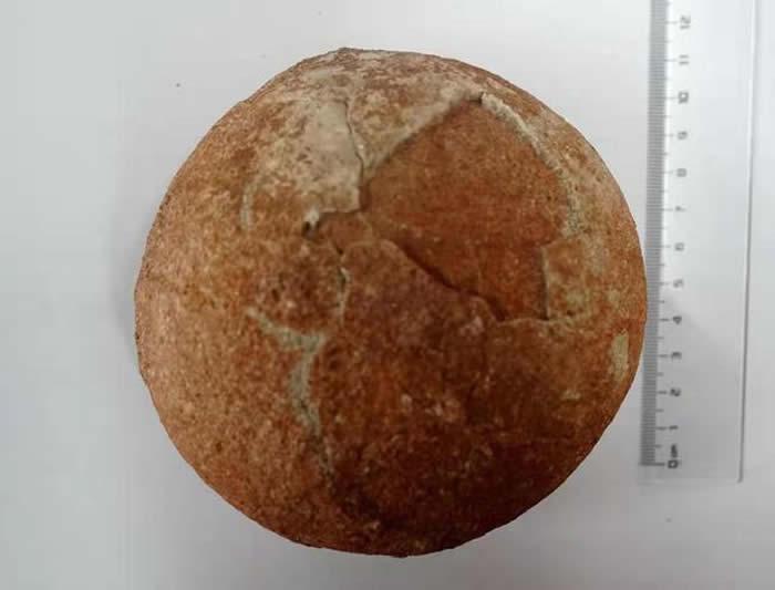 据捐赠者孔结彬介绍,蛋化石是他于2018年在黄铺镇鲍岭村实施105 国道改建工程施工过程中无意挖出。当时,那颗完整恐龙蛋化石,外壳坚硬。起初,他以为是玉石,就收集了。后来找到安徽省地调院和中科院古脊椎与古人类研究所专家认定,确定为恐龙蛋化石,他才找上天柱山地质公园的工作人员,主动要求捐赠。