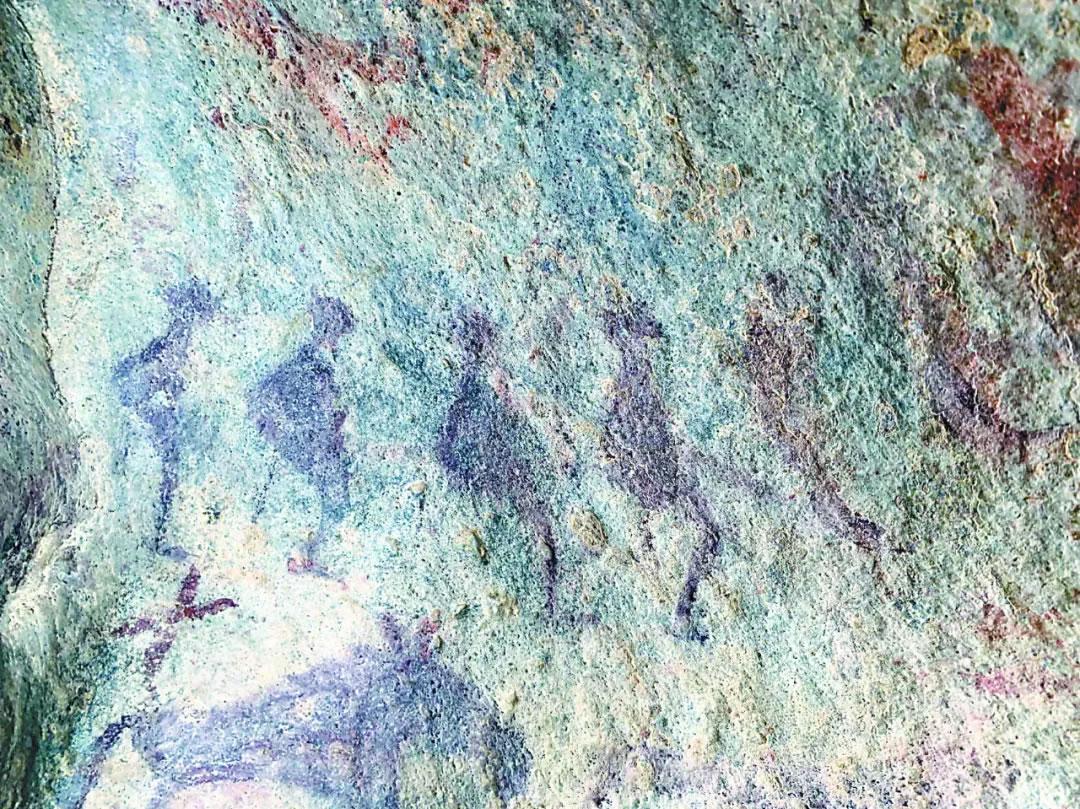 “人类滑雪起源地”的名号绝非自诩。在距离阿勒泰市区约一小时车程的汗德尕特蒙古族乡,记者看到敦德布拉克洞穴内的彩绘岩画。岩壁上的一排小人清晰可见,他们脚踏毛皮滑雪板,手持雪杖,弯腰屈膝,背着猎物在风雪中驰骋的姿态与现代滑雪如出一辙。国内外相关研究显示,这幅岩画的绘制时间距今已有1.2万年甚至更早。