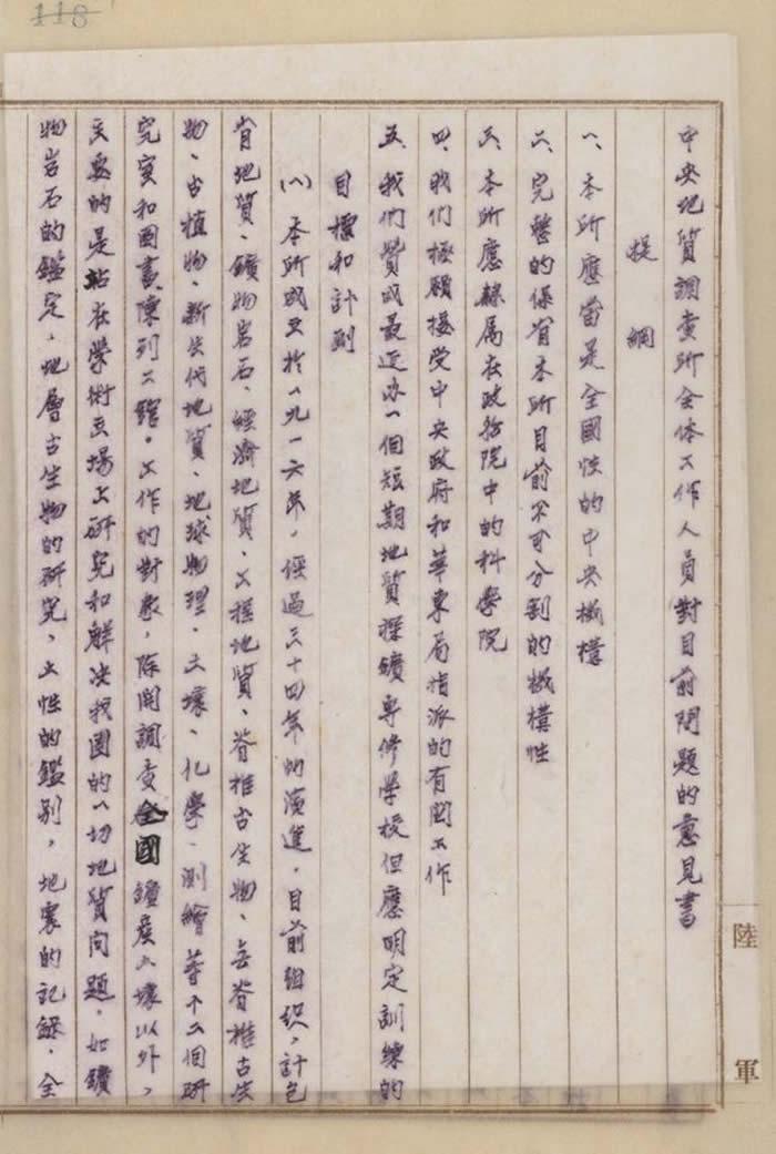因此,本所同人对于今后的隶属问题,我们全体只有一个意见,认为应当归入科学院。我们的理由是:容纳现有的各研究部门,及图书馆、陈列馆,惟有在科学院才可能有适宜环境。也必须保持扩充和联系这些部门,才能有力的训练工作人员提高技术与学术的进步和解决实际问题。这并不妨害任何建设部门工作的配合。同时,科学院是应该包括一切科学研究的总机构,在国家经济建设过程中负有统盘筹划的责任,也只有在这种环境中,地质学才能和其他科学各部门通力合作,增加集体研究的功效。