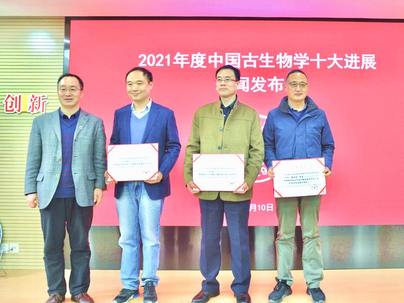 由南京古生物所领衔完成的三项成果包括:史恭乐研究员领衔的国际研究团队完成的“内蒙古早白垩世新化石揭示被子植物起源之谜”,王军研究员主持完成的“晚古生代化石宝库‘植物庞贝城’系统研究”,以及庞科副研究员领衔的早期生命团队完成的“青藏高原柴达木盆地典型埃迪卡拉化石的发现及其古地理意义”。