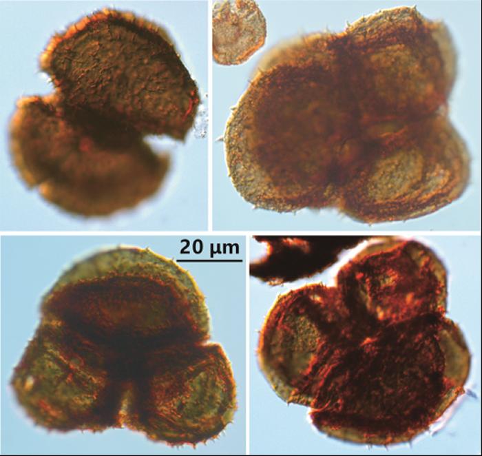 二叠纪-三叠纪之交陆相地层中的石松类孢子四分体,来自岩心ZK4703(楚道亮 供图)