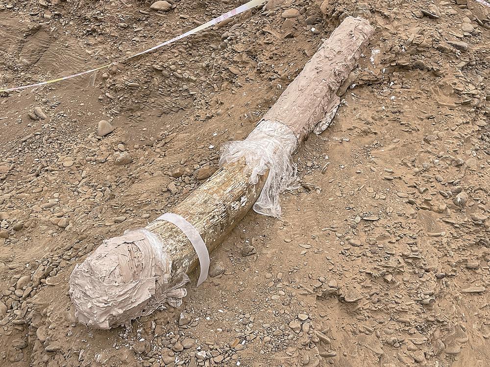 3月15日,海南藏族自治州同德县出土史前象牙化石。象牙化石已经被工作人员保护,准备做迁移工作。摄影:莫青