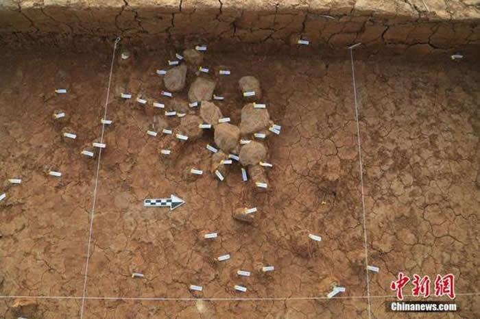 资料图:2021年3月24日在夜塬遗址拍摄的石制品密集分布状况。中新社发 陕西省考古研究院 供图