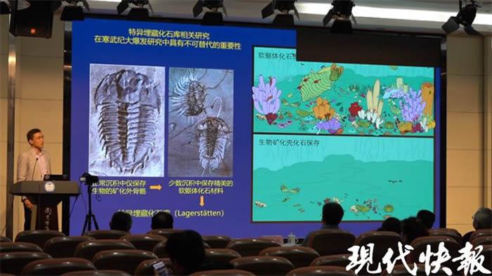 活动现场除了发布科普视频,还有精彩讲座。中科院南京地质古生物研究所研究员赵方臣以《寒武纪大爆发与特意埋藏化石库》为题,向公众讲述5亿年前的寒武纪生命大爆发以及特异埋藏化石库的发现。