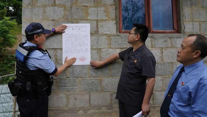 为了确保省级自然保护(实验区)的古生物化石资源和生态环境资源不受到破坏,雷山县法院于2022年5月9日,邀请剑河县检察院、剑河县城市管理综合行政执法局、革东镇人民政府等部门,深入到当事人家中开展生态保护法律宣传教育,当场送达停止建房《民事裁定书》和《禁止令》,责令邰某江、邰某冲和邰某青等三人立即停止在贵州省革东古生物化石省级自然保护(实验区)内建房的行为,以确保当地生态环境资源不再继续受到破坏。