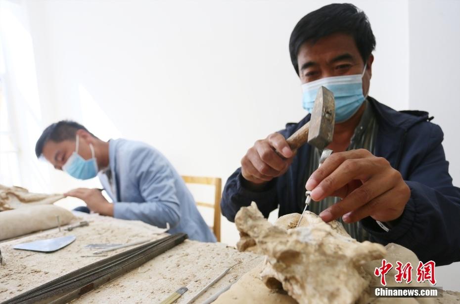 近日,记者来到和政古动物化石博物馆,古生物化石修复师张录和同事们正在清理化石上的岩石,逐渐揭开远古生命的面纱。