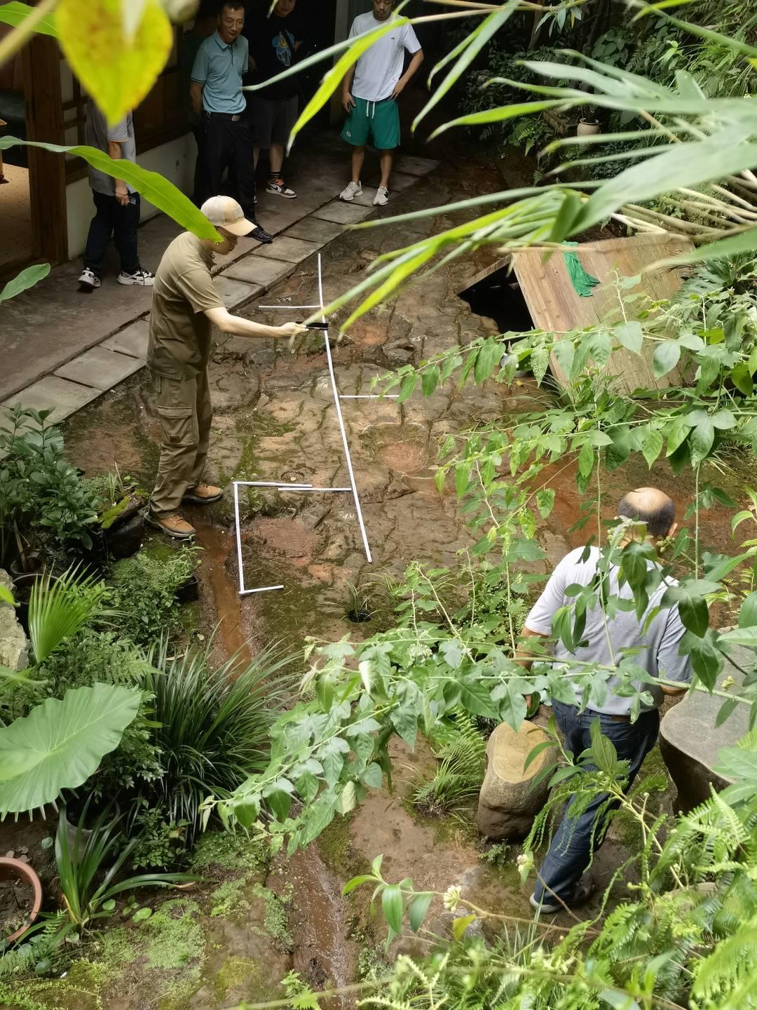 封面新闻记者在现场看到,这是一个幽静的小院坝,不注意的话,只发现地面有几个不起眼的水坑,其中一处莲花开得正艳。餐厅负责人朱敏女士安排人将坑中的积水排干,一行足迹立刻显现出来。