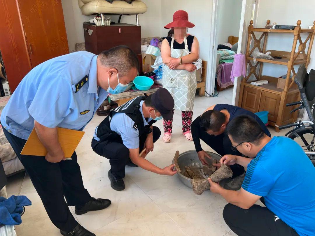 获此信息后,呼伦边境派出所高度重视,迅速安排民警进行入户走访和调查核实,在相关政策法规面前,刘某主动上交了发现的4块疑似古生物骨化石。
