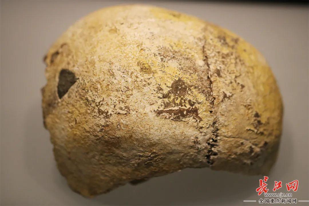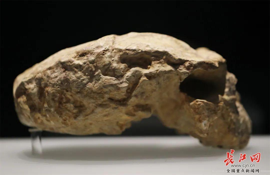 湖北省博物馆展陈的“郧县人1号头骨化石”,是我国目前保存最为完好的直立人头骨化石。长江日报记者 邱焰 摄