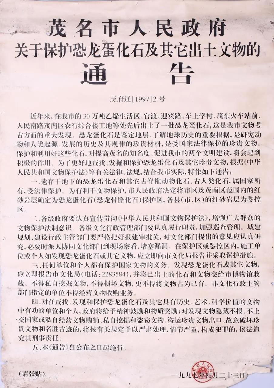茂名市政府当年通告。