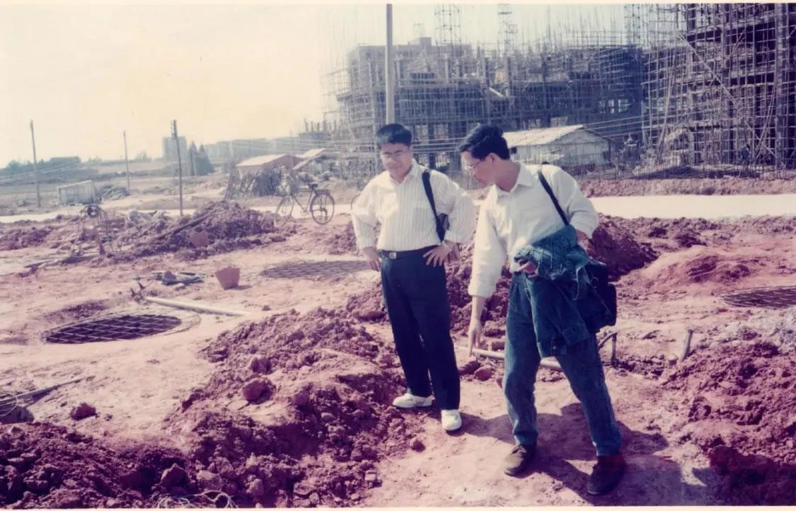 广东省文物考古研究所原副所长、研究员邱立诚(右)在出土工地考察。