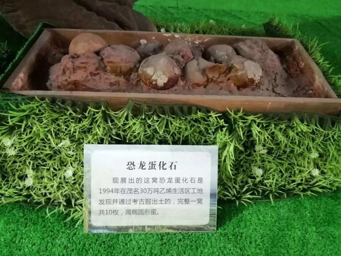 早在八千万年前的晚白垩世,恐龙曾是茂名这片热土的主人。1994年至1999年,在茂名市30万吨乙烯生活区、站前路、车上学村、人民南路茂南农业银行建设工地等六处地点,发现了100多枚恐龙蛋,地质年代为晚白垩世,距今约8000万-9000万年前。