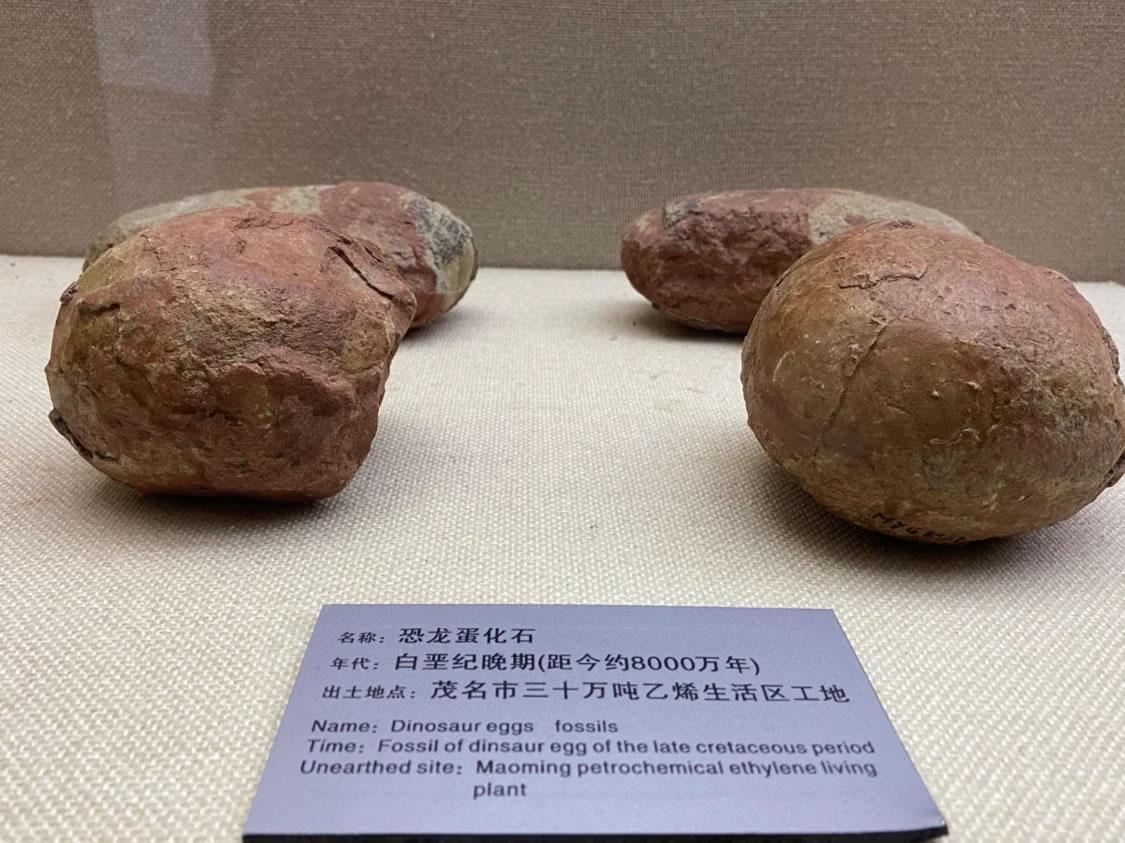 早在八千万年前的晚白垩世,恐龙曾是茂名这片热土的主人。1994年至1999年,在茂名市30万吨乙烯生活区、站前路、车上学村、人民南路茂南农业银行建设工地等六处地点,发现了100多枚恐龙蛋,地质年代为晚白垩世,距今约8000万—9000万年前。