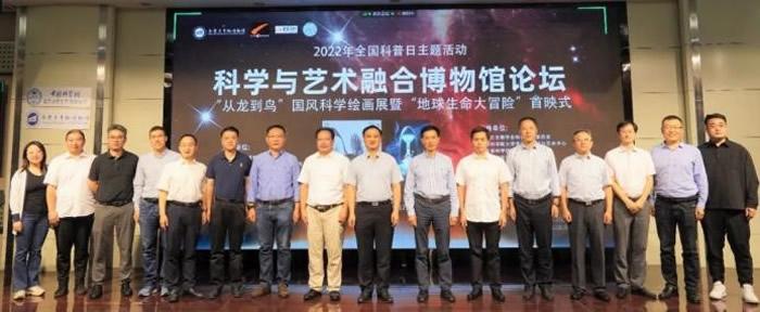 (化石网整理)据中国科学院南京地质古生物研究所:9月25日,科学与艺术融合博物馆论坛-“从龙到鸟”国风科学绘画展暨“地球生命大冒险”首映式在中国科学院南京地质古生物研究所南京古生物博物馆举办,这也是南京古生物所2022年全国科普日的主题活动之一。论坛由南京古生物博物馆、北京一彩自然科学技术研究有限公司、上海睿宏文化传播有限公司以及江苏省地质学会联合主办,采取线上线下相结合的方式召开。