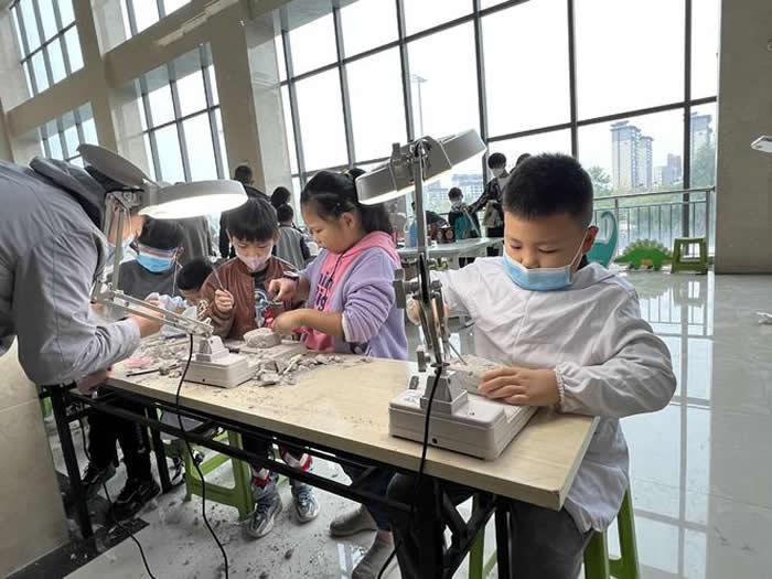 活动现场,家长带着小朋友与恐龙进行了一次零距离的亲密接触,在了解恐龙起源、恐龙进化、恐龙灭绝的过程中,小朋友还可以化身小小“考古家”,自己动手挖掘考古盲盒,把“恐龙”带回家;现场通过版画的形式制作出各种各样的恐龙,培养了小朋友探索恐龙奥秘的兴趣。