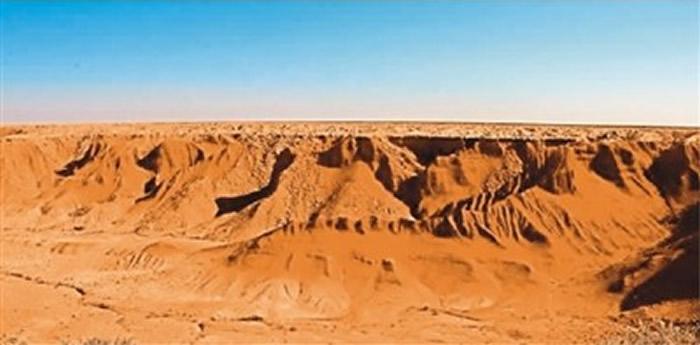 红崖台地的地质特性,造就了如今每逢大风吹过便红沙四起的地貌景观。