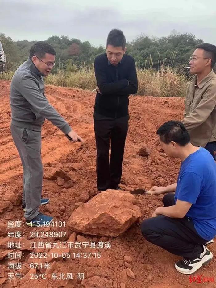10月5日当天,中国科学院古脊椎动物与古人类研究所(以下简称古脊椎所)的专家王强就接到江西省文物考古研究院的消息,武宁县发现疑似恐龙蛋化石,武宁县博物馆的工作人员已赶往现场对标本进行采集。