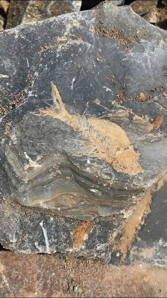 “十几公分长吧,像鲫鱼一样的。不止这一块,但都是不完整的,只有一两条是完整的。” 临海市括苍镇山头何村村党总支书记何经永告诉记者。