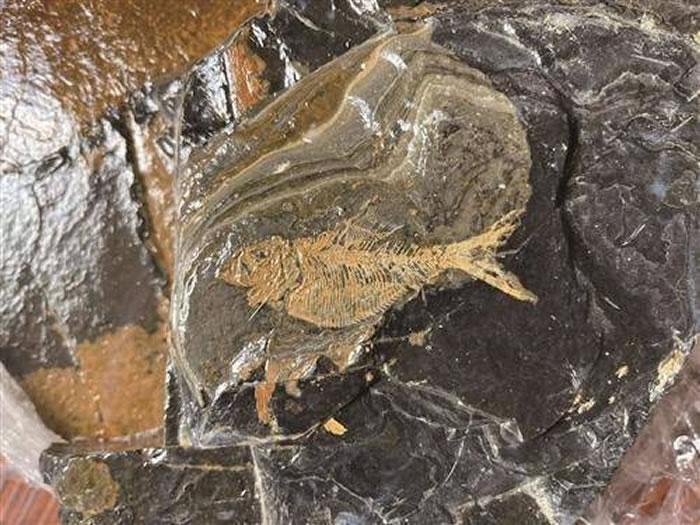 何经永介绍,在专家的指导下,目前这些鱼化石已经过保护处理。“我们在岩石表面上了一层清漆,再包上保鲜膜,以防鱼化石风化开裂。”