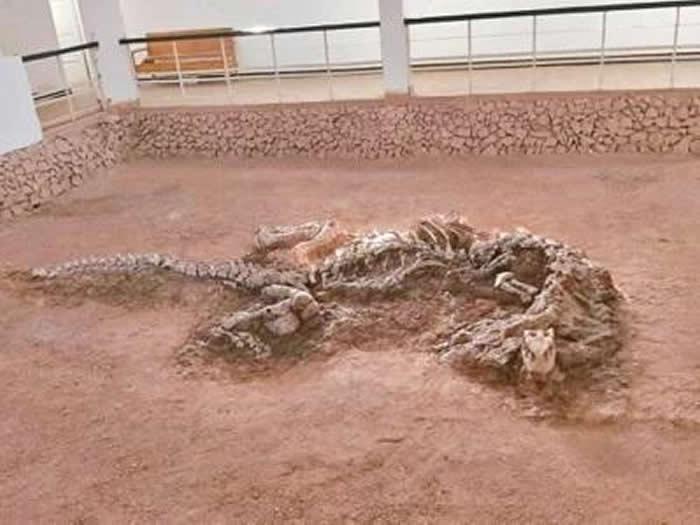 大洼恐龙山一号馆保存的许氏禄丰龙化石。图片来源:台湾《经济日报》