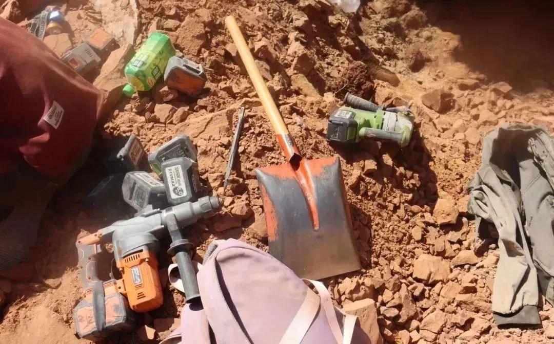 经全力工作,于8月1日上午在姬家沟山沟将正在盗掘古脊椎动物化石的犯罪嫌疑人丁某祥、丁某福现场抓获,查扣盗掘疑似古脊椎动物化石552克、作案工具电镐3把,电镐电池11个,头灯2个,钢钎5根,铁锹3把,摩托车2辆。