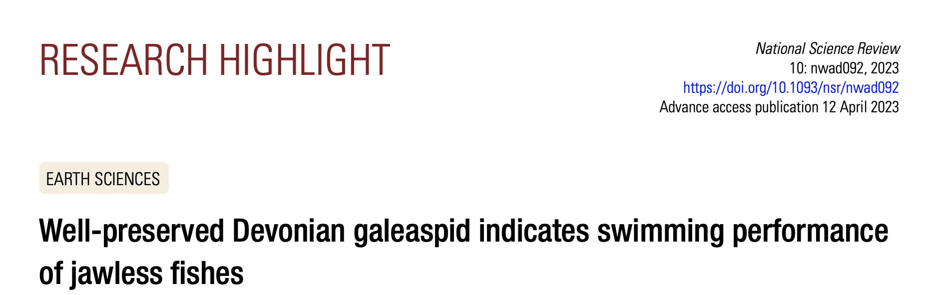 近日,《国家科学评论》第10卷第7期将古脊椎所盖志琨研究员团队主导的九尾狐甲鱼的研究成果选为封面文章,并配发了法国科学院院士Philippe Janvier 亮点评述文章。 2023年3月,研究团队在《国家科学评论》在线报道了在广西早泥盆世古鱼类特异埋藏生物群中发现的首个完整保存尾鳍的盔甲鱼类——九尾狐甲鱼,弥补了重庆动物群灵动土家鱼尾鳍保存不完整的缺憾。