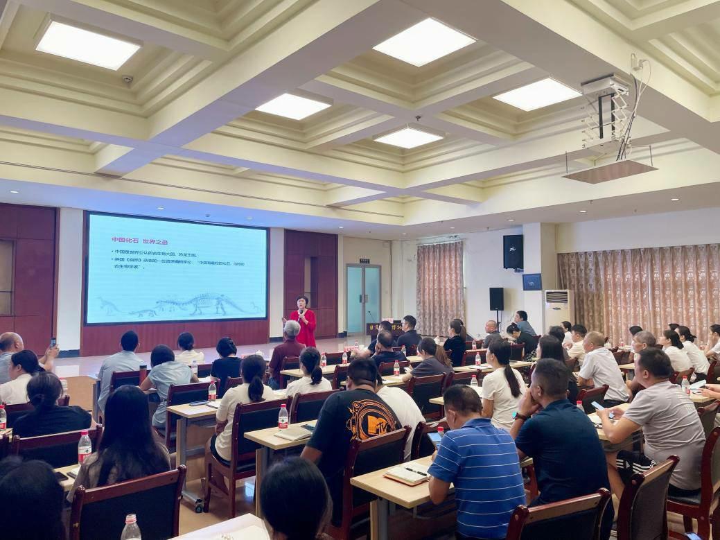 与四川盆地远隔千里的甘肃出产恐龙化石种类丰富,而且别具特色。来自甘肃农业大学的李大庆教授则从发现、追寻的角度,精彩有趣地讲述了发现刘家峡恐龙足迹群、追寻兰州恐龙动物群的发现故事,并高屋建瓴地提出研究恐龙的四大作用。作为不可再生的、宝贵的自然资源,古生物化石的保护与利用一直是热点话题。国家古生物化石专家委员会办公室副主任、中国地质博物馆研究员王丽霞围绕保护化石资源、守护远古生命;弘扬化石文化、增强民族自信;传承丝绸之路、促进学术交流;加强科学研究、助力生态旅游等四个层面,从自身经历出发,提出了化石保护上举办化石周、设立化石村、实施化石丝绸之路、建立国家古生物化石标准等创新性做法,表达了对化石活化利用,更好服务于社会的构想和期待,分享了她与古生物化石的不解之缘。讲座结束后,王丽霞向自贡恐龙博物馆捐赠了其著作的书籍。