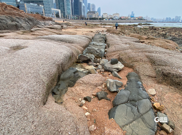 记者将现场视频以及礁石区的照片发给青岛海洋地质研究所的工作人员,得到的答复是:褐红色岩石是花岗岩,属于火成岩的侵入岩,在青岛海边很常见。
