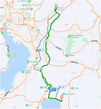 昆明长水机场-抚仙湖翡翠湾酒店(寒武纪小镇店)路线图