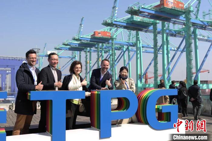 ↑ “走进天津对话中法”交流对话会23日在天津举行,图为22日中法两国60余名代表参观天津港智慧零碳码头。 佟郁 摄