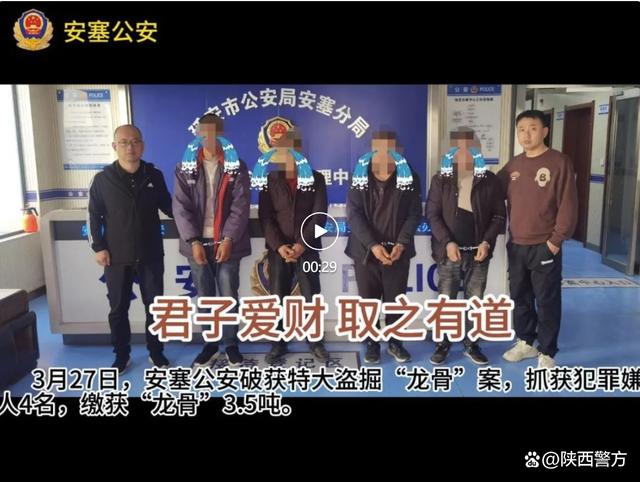 “冬春行动”开展以来,延安公安安塞分局周密部署,精心组织,不断加大对文物犯罪的打击力度,3月27日,刑侦大队联合砖窑湾派出所成功破获一起特大盗掘古脊椎动物化石(俗称“龙骨”)案,抓获犯罪嫌疑人4名,缴获“龙骨”3.5吨。#延安头条#
