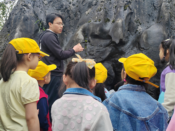 ↑ 川东南地质大队的工作人员为参加活动的孩子们讲解地质知识。